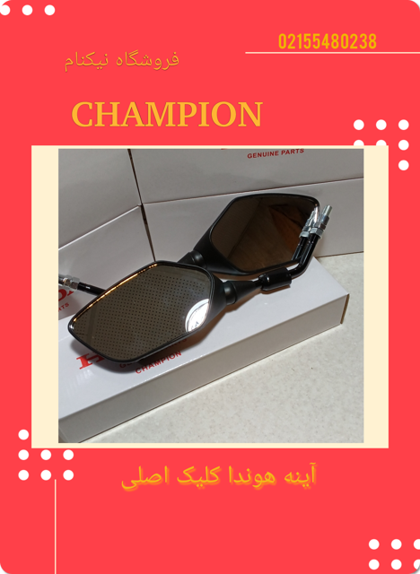 آینه موتورسیکلت هوندا کلیک اصلی با رابط استاندارد، کیفیت برتر و نصب آسان، طراحی مقاوم و دید وسیع جهت افزایش ایمنی و راحتی رانندگی، مناسب برای تمامی مدلهای هوندا کلیک، تضمین اصالت و دوام بالا.